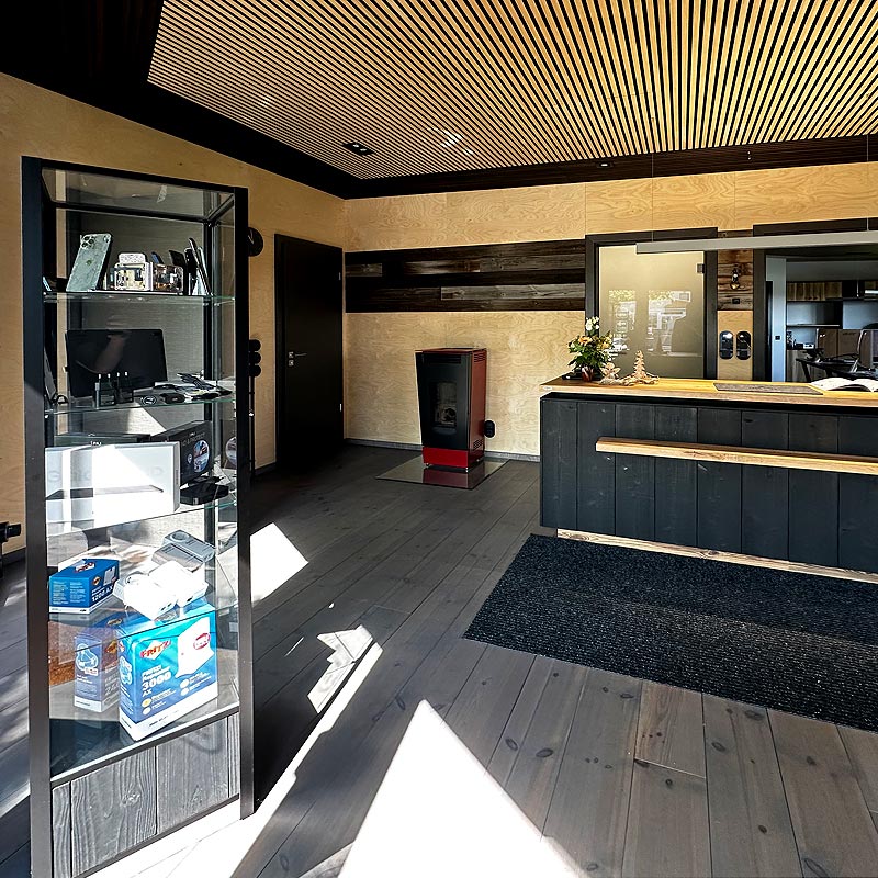 Die 12er Alm ist innovativ erbaut und trotzdem bodenständig. Hier trifft Ursprüngliches auf Modernes, Handwerk auf Geschmack und Technik auf Erholung. Wo finden Sie uns? Ganz einfach: Im „Naturpark Dübener Heide“, direkt am Radweg „Mulde Acht“.